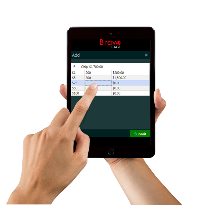 Bravo Cage is also 100% PAPERLESS, providing seamless integration and flexibility to the user across Paid ins/outs, FM Deposits/Withdrawals, Markers issued/paid, check in/out and transfers. The system even includes paperless logs and can detail how much money to order for any day and the denominations from past history.